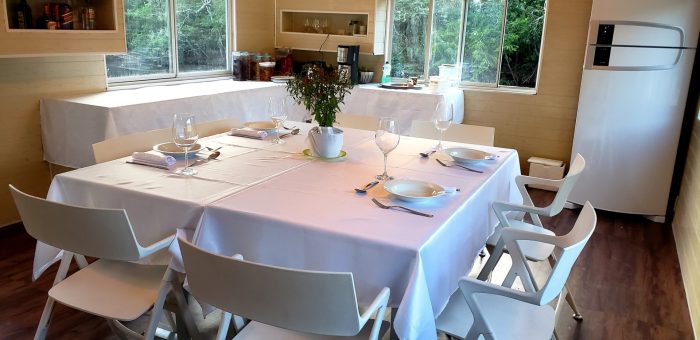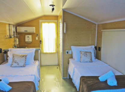 River Plate has six independently operated River Trains consisting of 4 to 8 single- and double- occupancy guest cabins, various support cabins, and a shallow-draft tugboat. Each River Train has a 12’ x 23’ dinning/sitting lounge, where guests dine on linen tablecloths enjoying our chefs’ four course meals. On arrival from the US, guests fly directly to the river they will be fishing, landing on the water near where their designated River Train is parked. Typically, that “parking spot” is a sugar-white sandbar where arriving anglers can enjoy their choice of a celebratory drink.