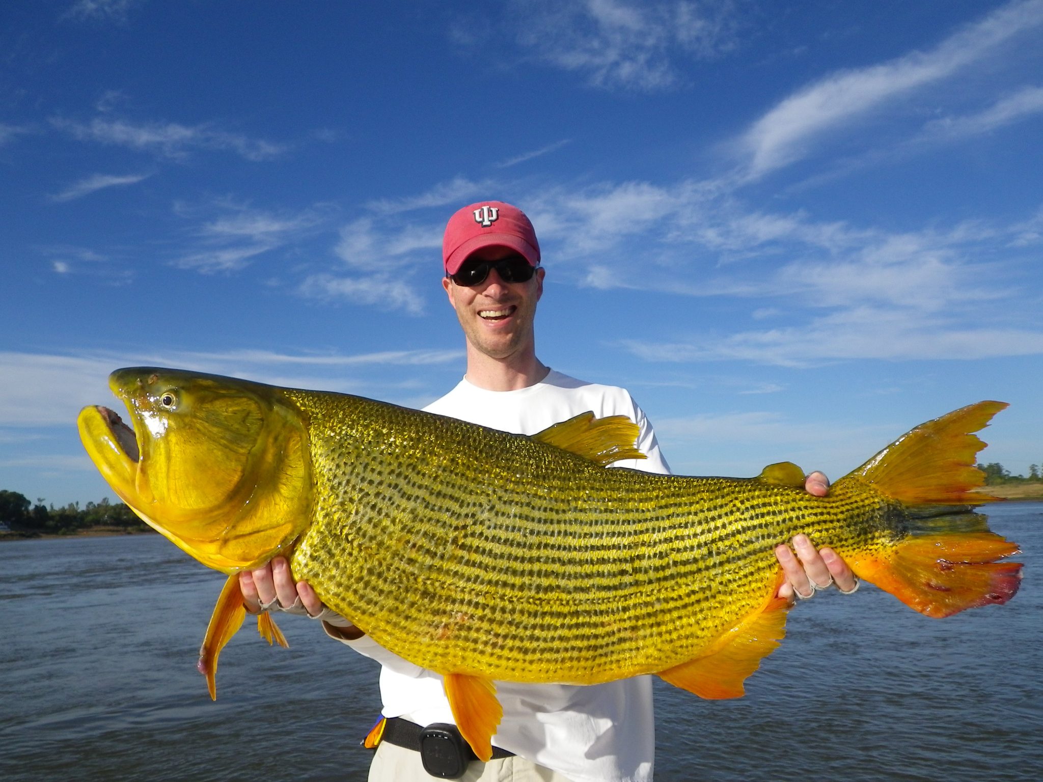 November thru April: These are our summer months when the fish seem to be everywhere but just not quite as large as during our winter months. Days are long this time of year, with 13 hours of sunlight. Three- to five-hour breaks at midday for lunch and a siesta become routine. Your arms give away long before the dorado do! This is also a good time to combine your fishing by stopping to tangle a couple of days with giant wolf fish or dove hunting on the way to or from Montevideo.